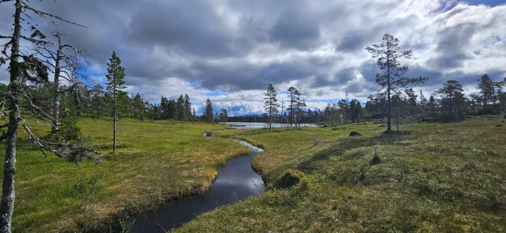 Der Weg heute ist gut markiert, die Sümpfe halten sich angenehm zurück und ab und zu blitzt die Sonne durch die Wolken.