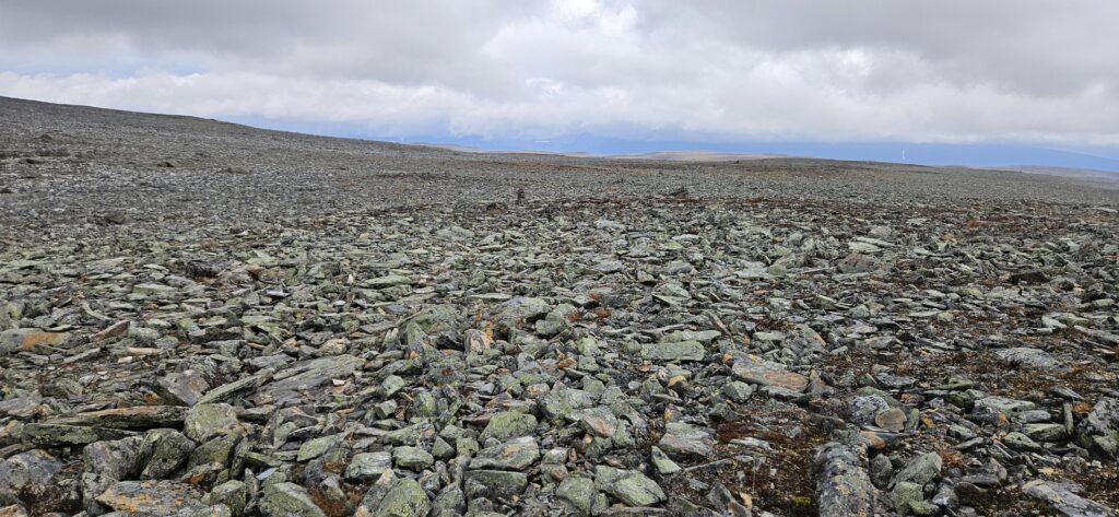 Und tatsächlich: jenseits des Geröllfelds bin ich windgeschützter unterwegs. Eine Handvoll Nüsse und Rosinen stillt das Schlimmste, und bergab geht es ohnehin leichter.