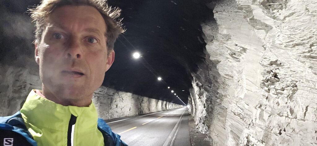 Um wieder in den Rhythmus zu kommen gehe ich noch mal 2 Kilometer bevor ich nochmal 9 laufend in den Nordkapptunnel hinein zurück lege.