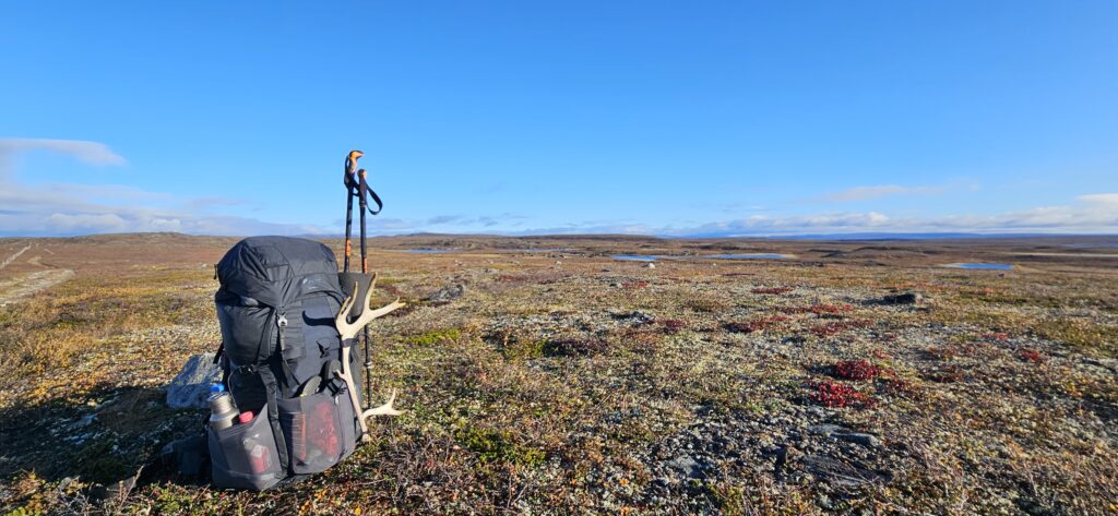 Mein Rücken meldet sich inzwischen immer öfter, deshalb lege ich alle drei bis vier Kilometer Rucksackpausen ein. Eineinhalb Stunden vor Jotka treffe ich auf eine junge Französin, von der mir Janis schon erzählt hat. Sie trägt ein erstaunliches Sammelsurium aus Knochen und Tierschädeln mit sich herum – Geschenke für ihre vielen Neffen. Ich bin heilfroh, dass Felix seine Knochensammel-Leidenschaft aufgegeben hat, auch wenn ein Rentiergeweih als Erinnerung durchaus verlockend ist.