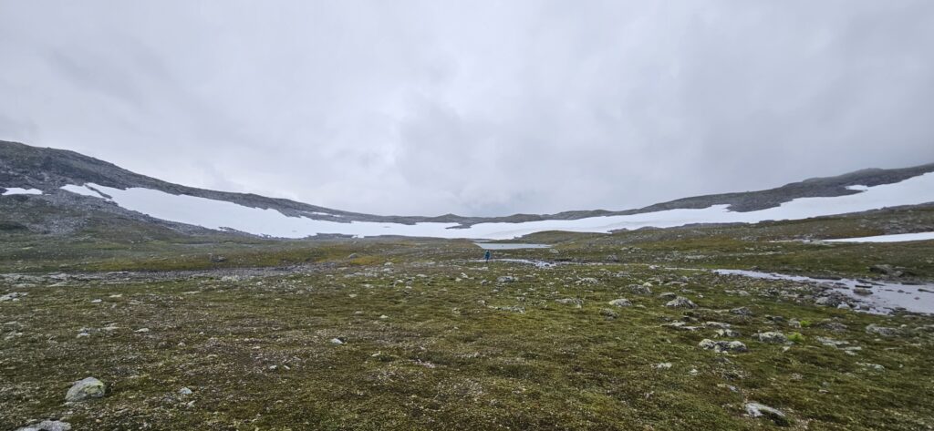 Das Børgefjell weckt uns mit Regen. Also heißt es: alles im Zelt sitzend einpacken. Gefrühstückt wird gemeinsam bei mir im Zelt – zu zweit ist selbst das schlechteste Wetter nur halb so schlimm.