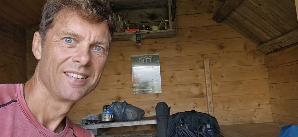 Wir steigen also flussaufwärts in Richtung Vimavatnet auf. Der Weg zieht sich hinauf, bis wir endlich den Sattel erreichen. Dann geht es bergab über ein großes Schneefeld, bevor wir langsam auf die Ransabua zusteuern. Die Hütte ist schlicht und einfach: zwei Holzpritschen, ein Tisch, ein Hocker und ein Ofen. Für uns ist sie heute das reinste Paradies – selbst wenn am Abend kurz die Sonne herauskommt.