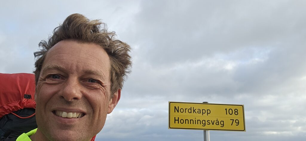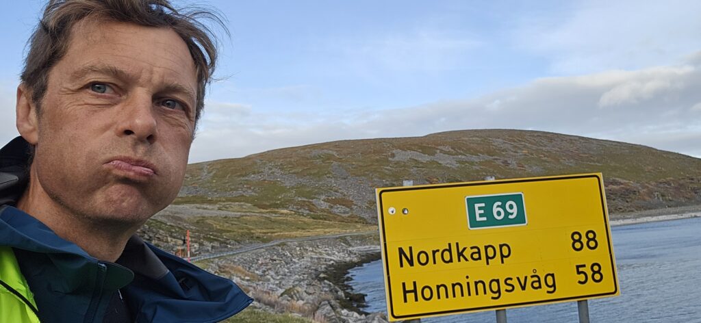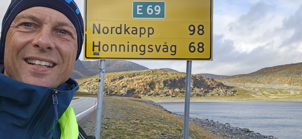 Kurz vor 17 Uhr erreiche ich mein Tagesziel Repvågkrysset. Um 19 Uhr würde der Bus nach Honningsvåg fahren. Aber kaum habe ich den Rucksack abgesetzt und nach warmer Kleidung gekramt, höre ich ein Auto. Daumen raus – und das erste Auto hält! Keine Minute gewartet und schon eine Mitfahrgelegenheit.