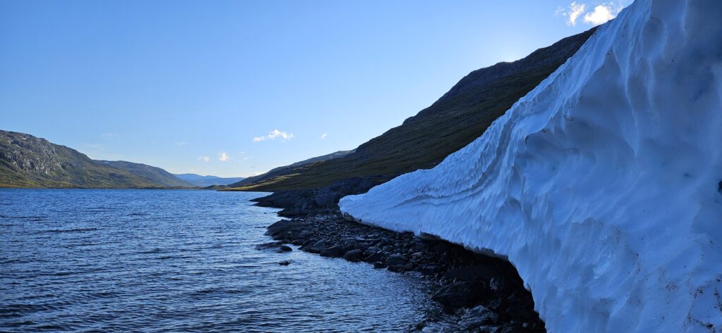 Der Weg führt heute meist am Wasser entlang, nur kurze Anstiege unterbrechen die Etappen. Schon bald erreiche ich die Grenze zu Schweden – und damit den größten Nationalpark des Landes: Padjelanta. Das Wort stammt aus dem Sami und bedeutet „hohes Land“.