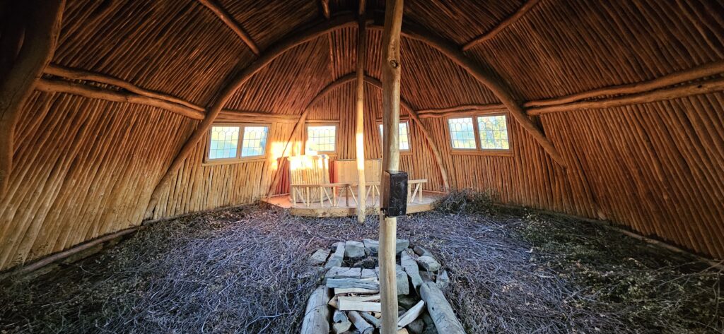 Nach dem Abendessen besuche ich noch die kleine Kirche des Ortes: schlicht, aus Holz gebaut und außen mit Torfziegeln verkleidet.