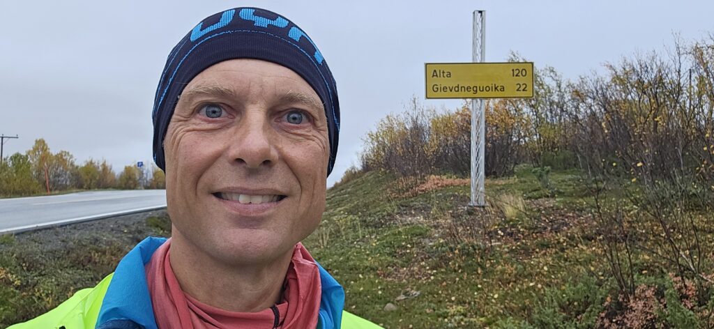 Heute steht ein ganz besonderer Test auf dem Programm: Plan B.Michi hat mir aus der Heimat meinen Laufrucksack mitgebracht – eigentlich gedacht für die letzten Kilometer zwischen Lakselv und Slettnes fyr, aber ebenso praktisch für die Nordkapp-Etappe. Heute will ich ausprobieren, wie es sich damit anfühlt, wieder einmal richtig zu laufen – Ziel: 34 Kilometer Richtung Masi.